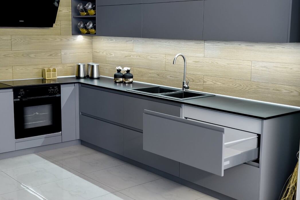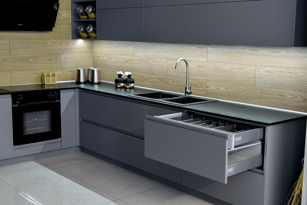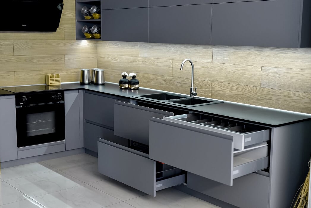 Οι μηχανισμοί συρταριών που χρησιμοποιούμε είναι της κορυφαίας εταιρίας blum και στον στάνταρ εξοπλισμό .