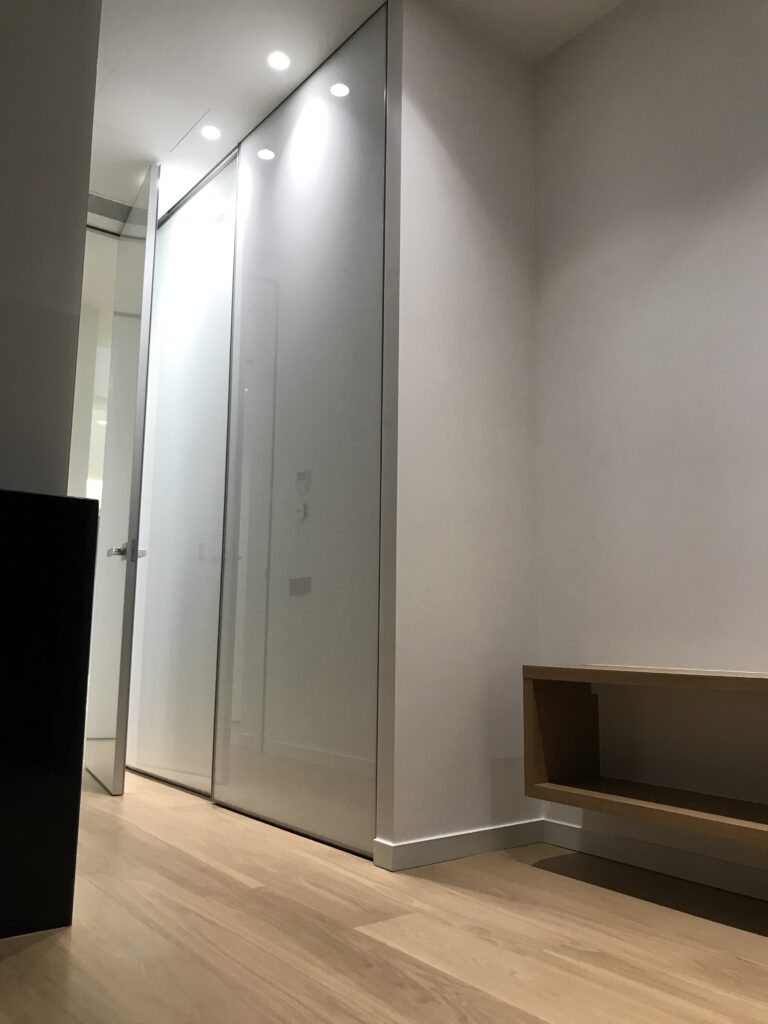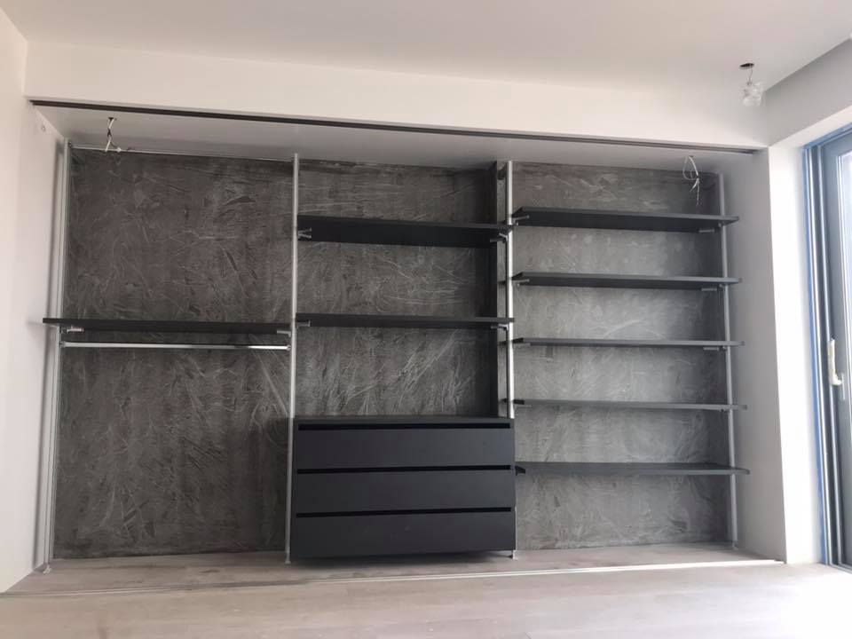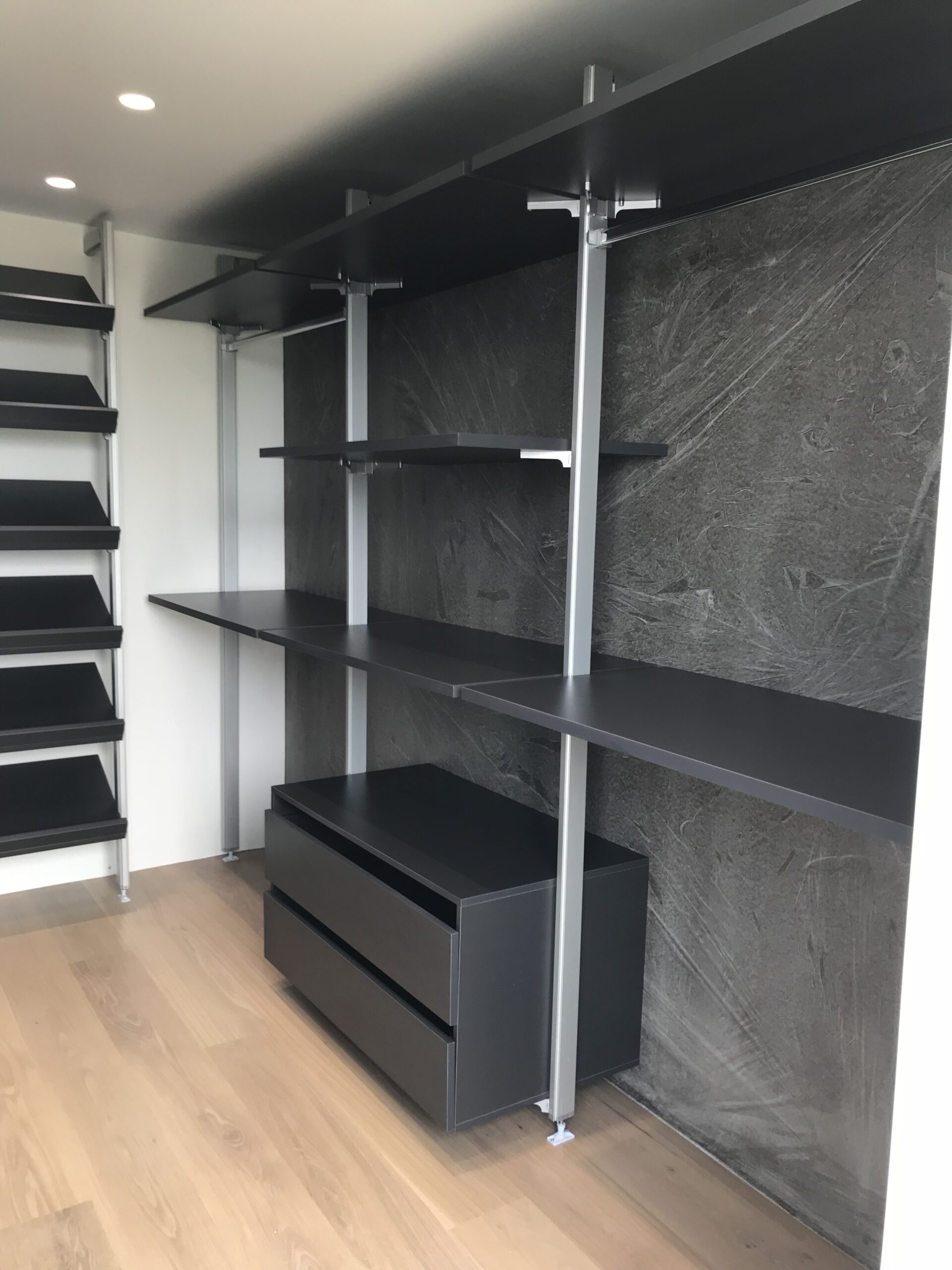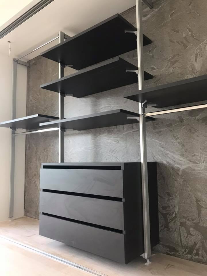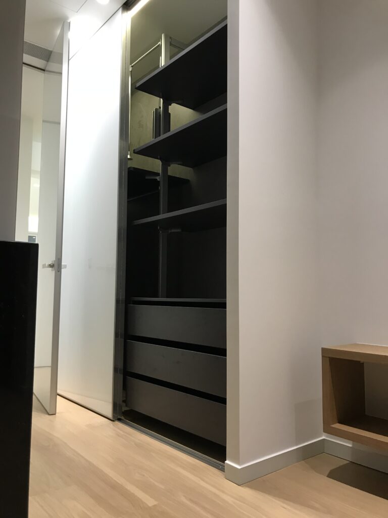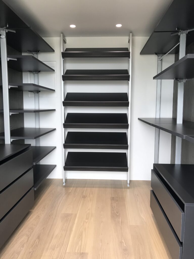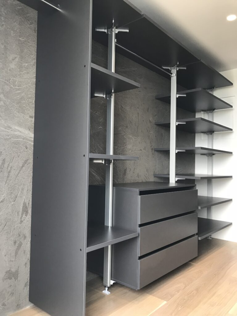 Ντουλάπες με φωτισμό – βεστιάρια σε ανθρακί απόχρωση και ξύλο καρυδιάς