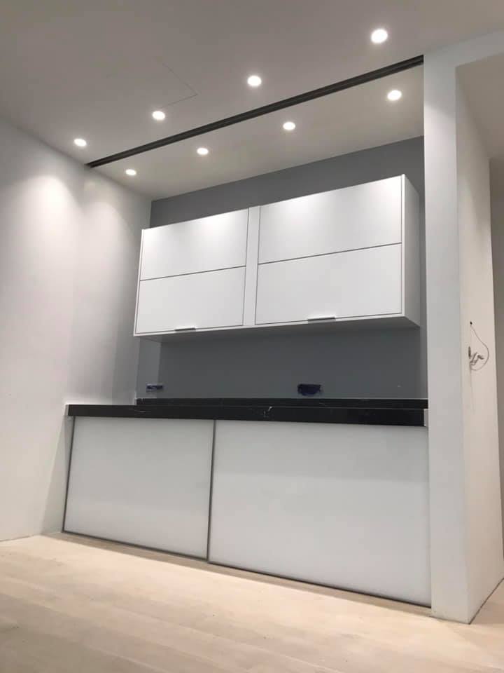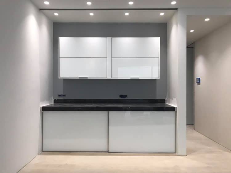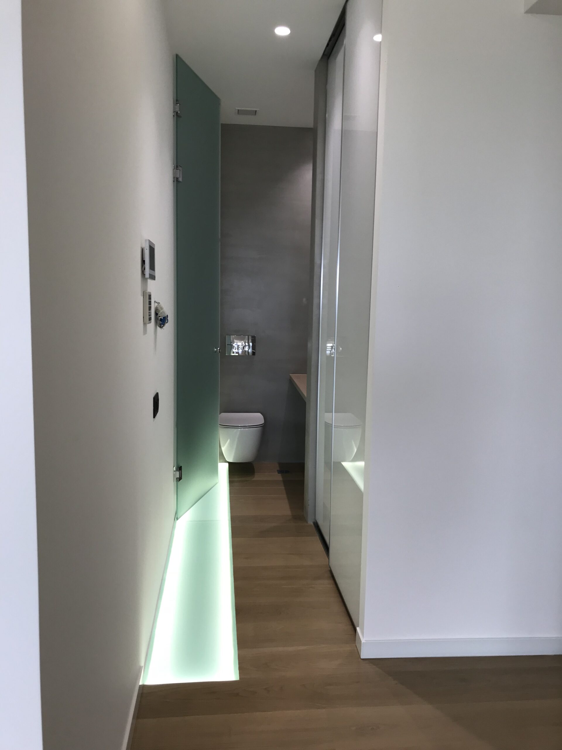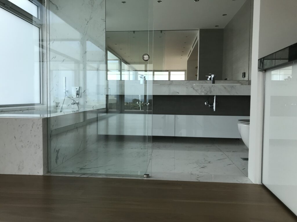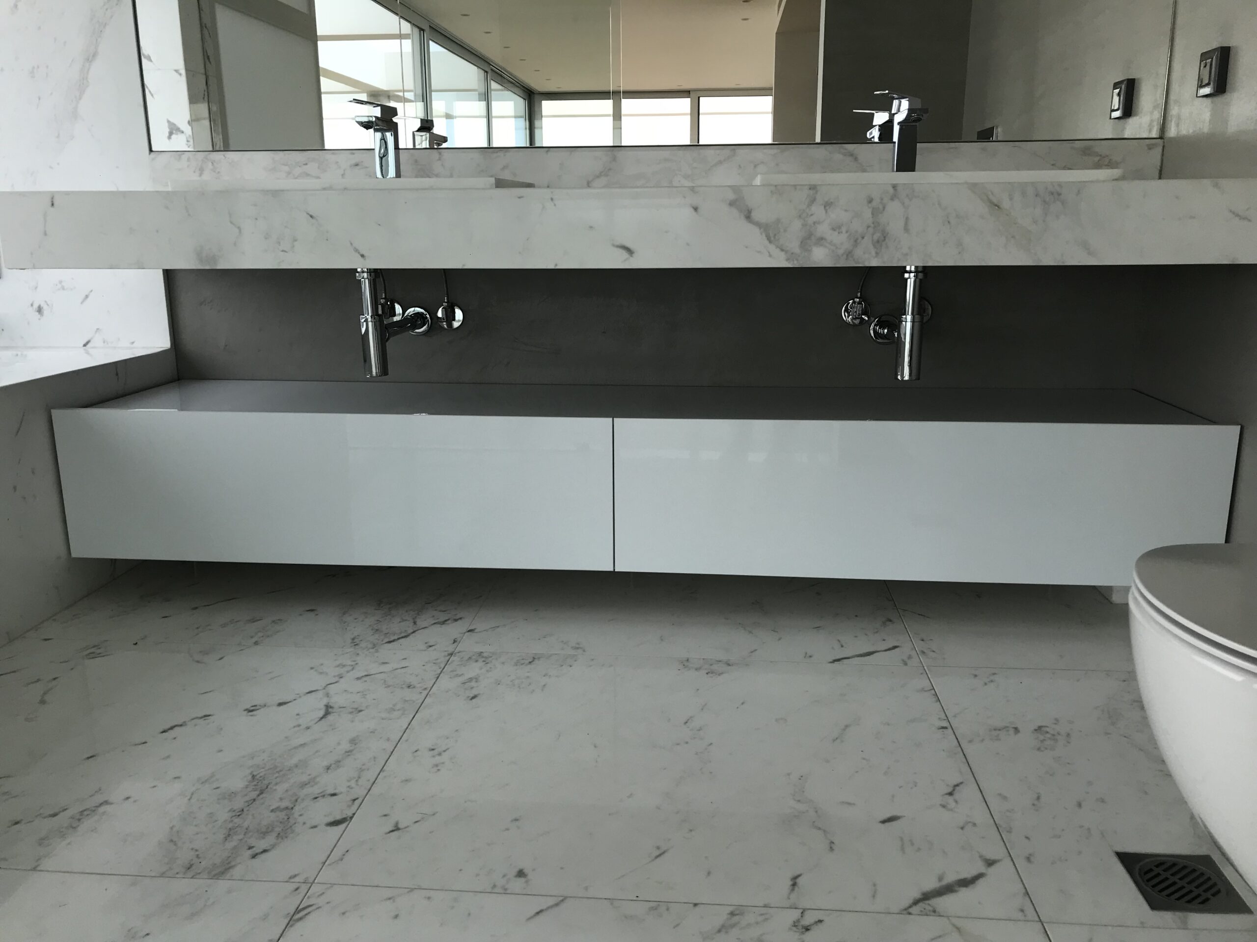 Την ανακαίνιση μπάνιου – έπιπλα από λάκα ανθρακί .
